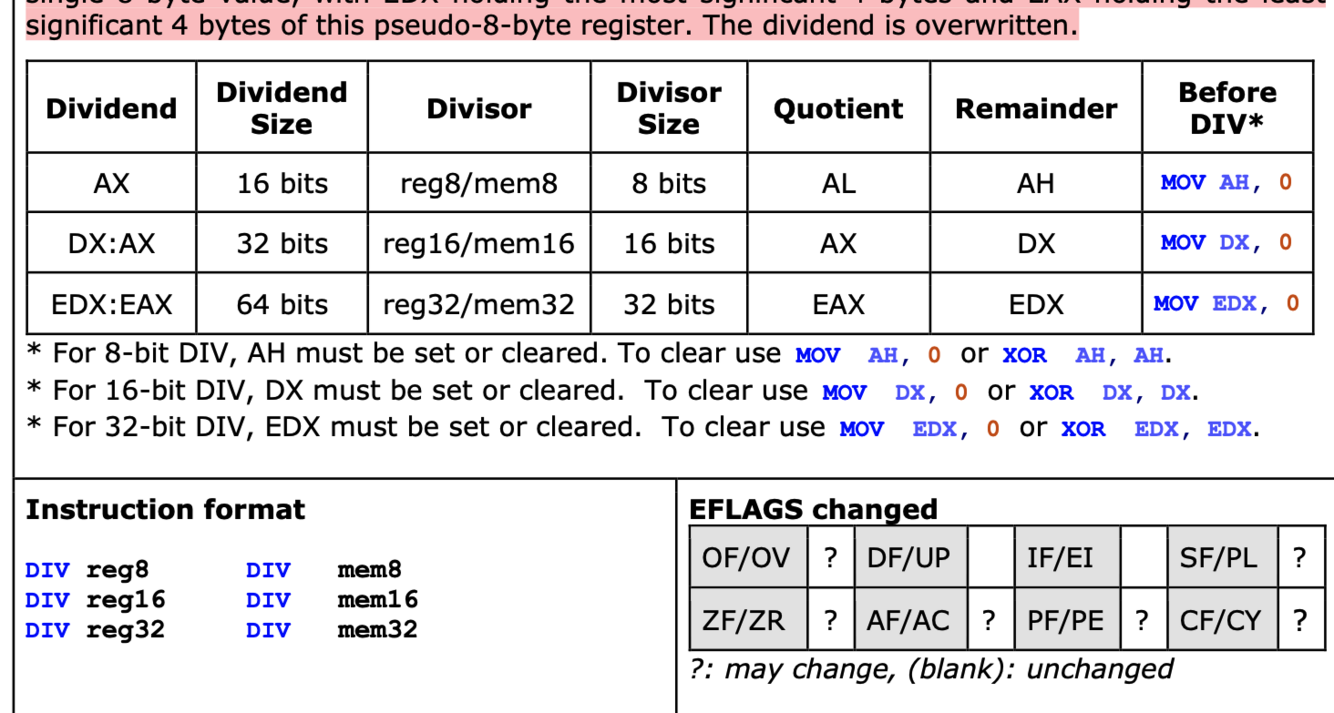 significant 4 bytes of this pseudo-8-byte register. The dividend is overwritten.