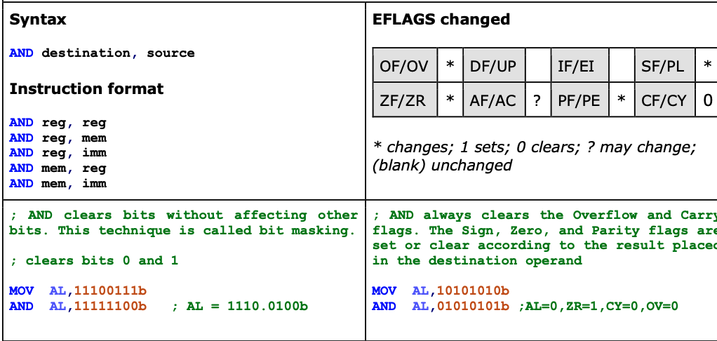 result to 1. If none of the corresponding bits in the operands have the value 1, the instruction