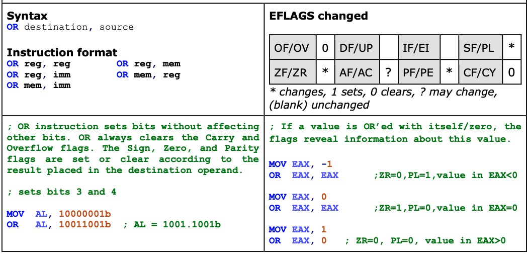 at least one of the corresponding bits in the operands has the value 1, the instruction sets the