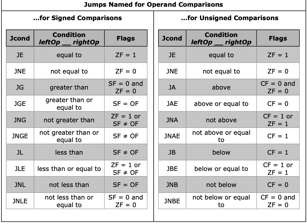 JUMPS NAMED FOR OPERAND COMPARISONS