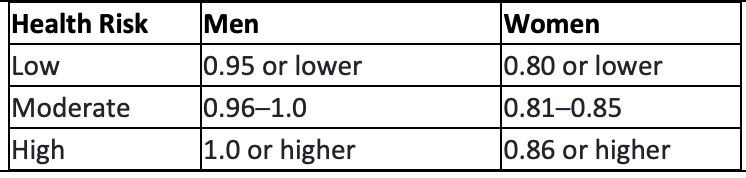 WHR = Waist Measurement ÷ Hip Measurement