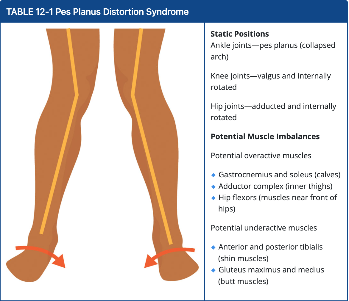 - Ankle joints—pes planus (collapsed arch)