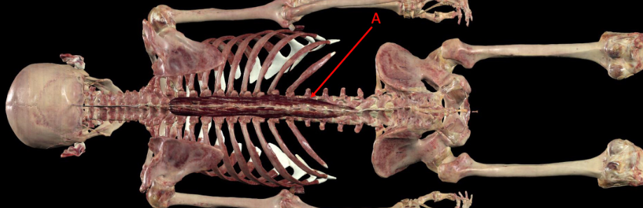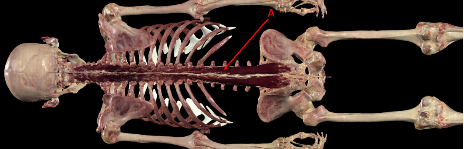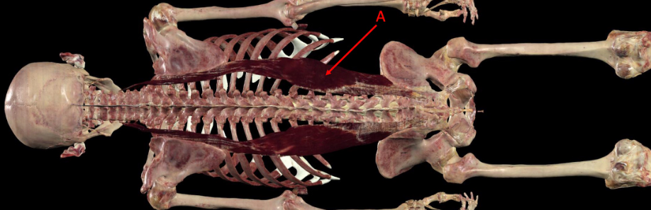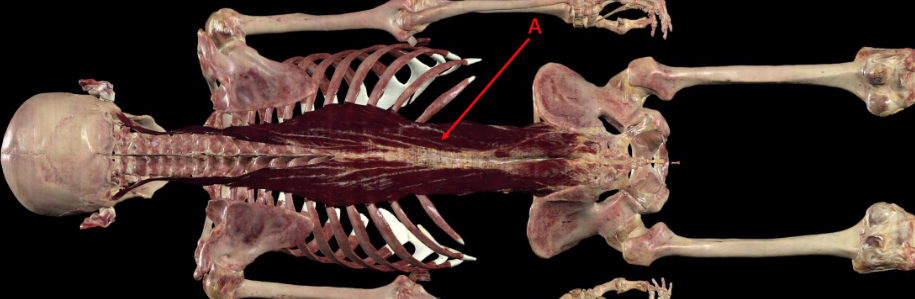 Longissimus thoracis, hold lumbar and thoracic regions erect, laterally flexes spine when working unilaterally