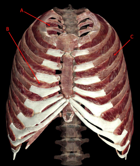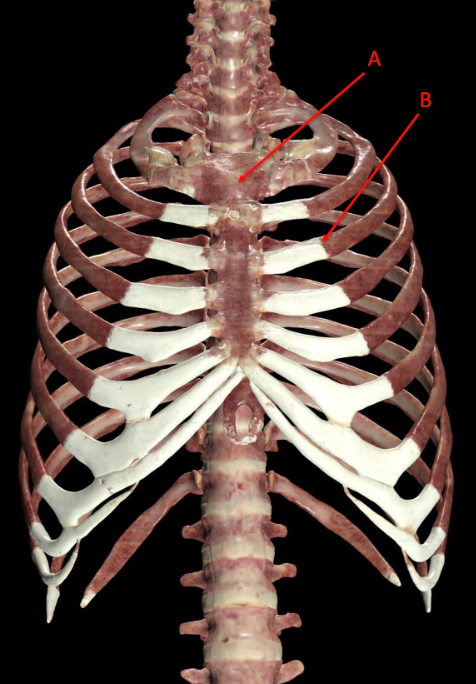 B. Costochondral joint, surfaces of attachment for anterior muscle fibers