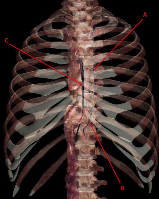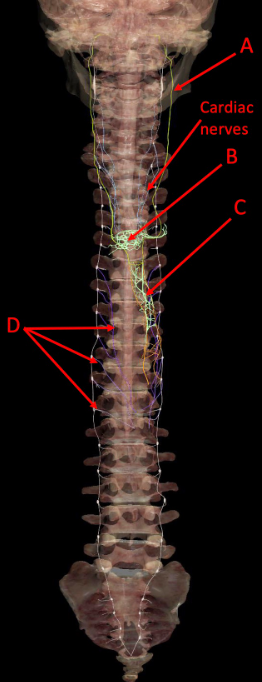 D. thoracic splanchnic nerves (greater, lesser, least)