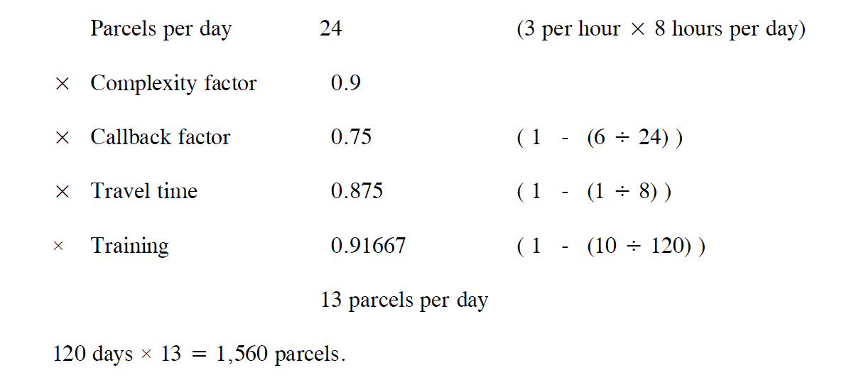 Answer (2) An accurate depiction of the parcel density factor, complexity factor, and call back factor.