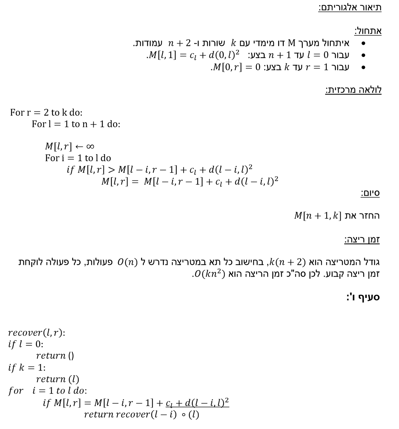 describe the algorithm and the construction algorithm