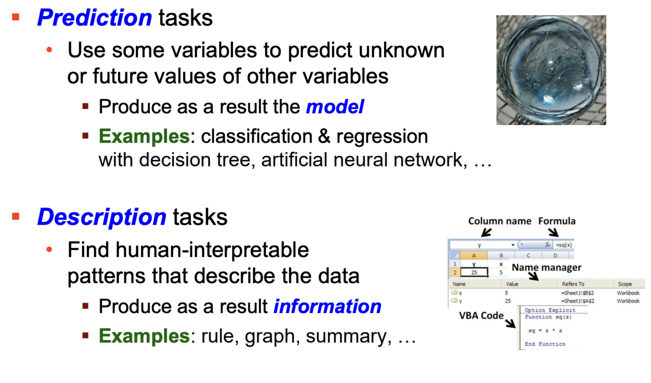 Was sind die zwei Aufgaben von Data Mining?