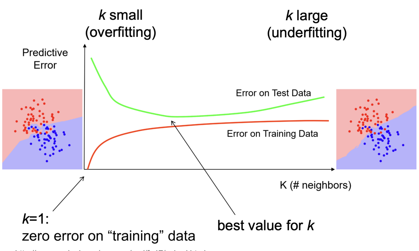 Wann overfittet und underfittet KNN im Bezug auf k?