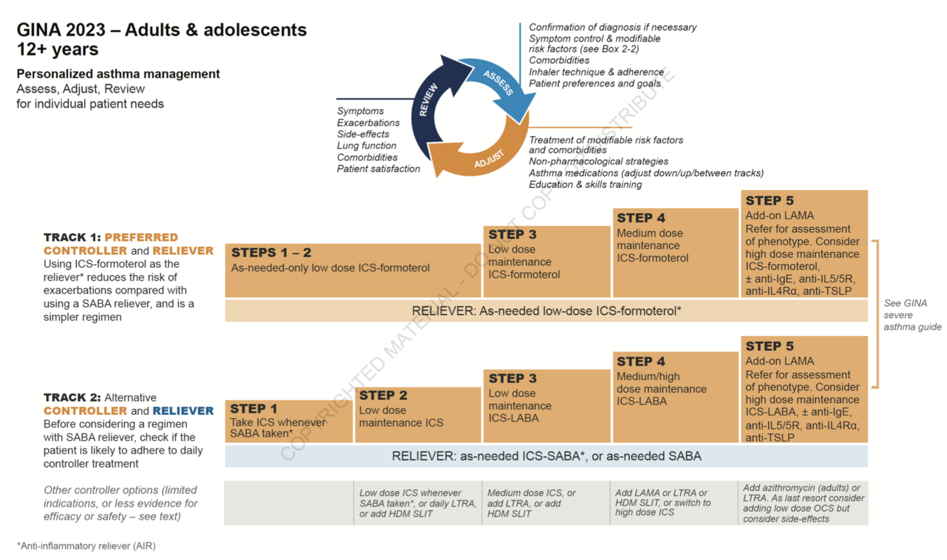 vi. Often due to modifiable factors e.g. incorrect inhaler technique, poor adherence, smoking, comorbidities, incorrect Dx