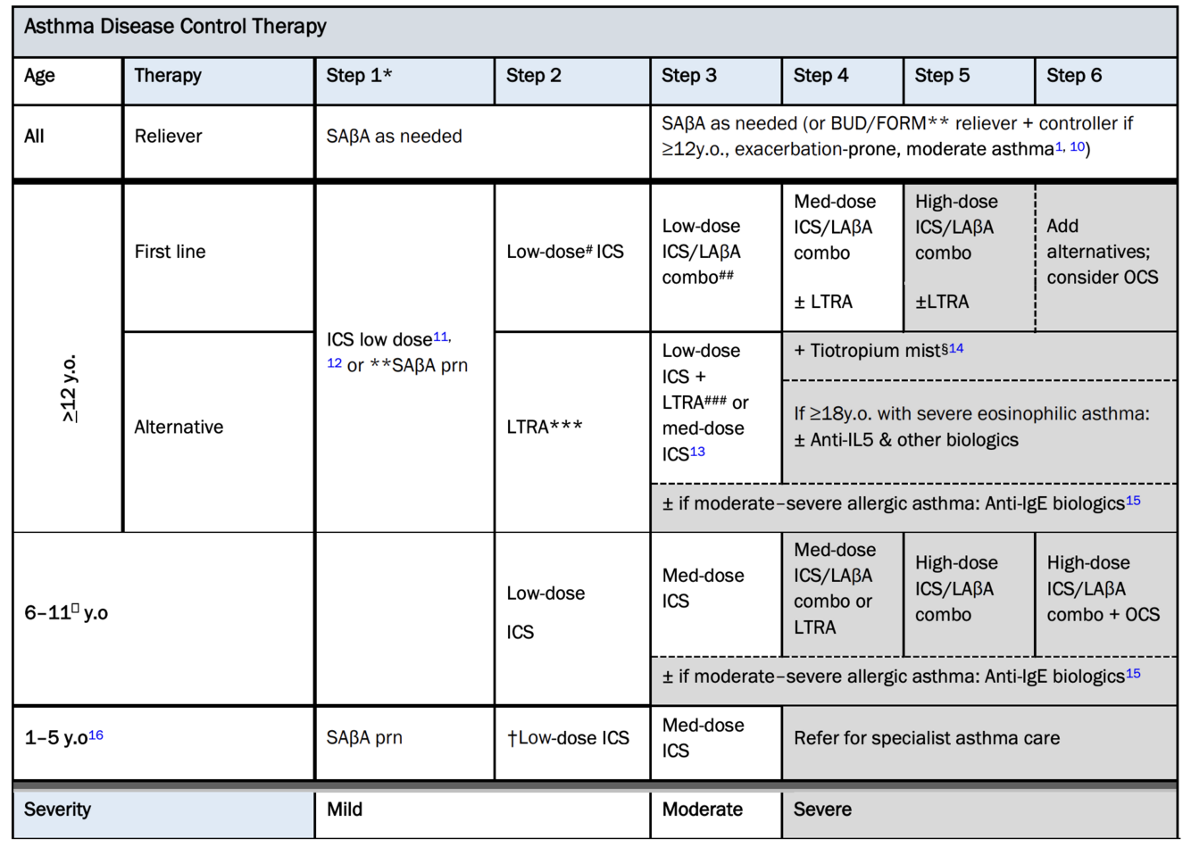 What is typical management of childhood asthma?