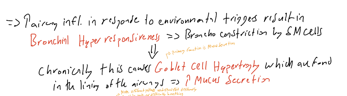 Goblet cells. Hypertrophied in asthma