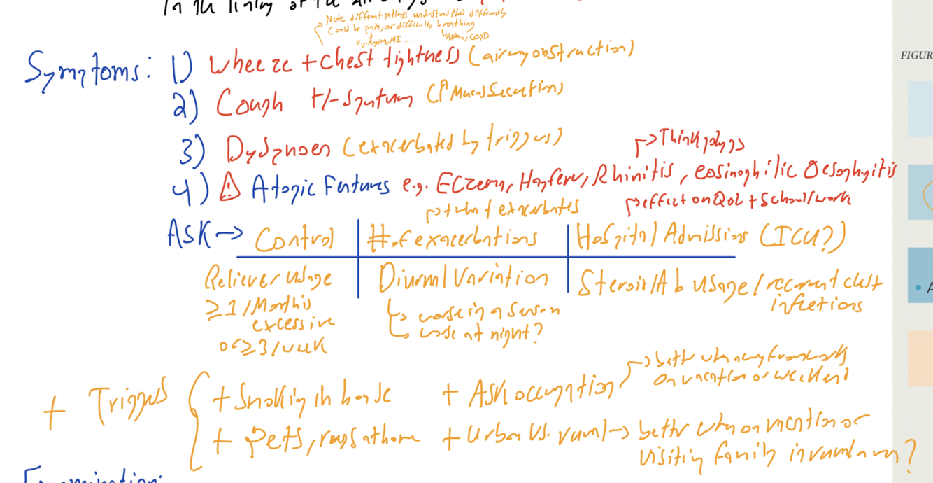 What questions would you ask a patient in an asthma history?