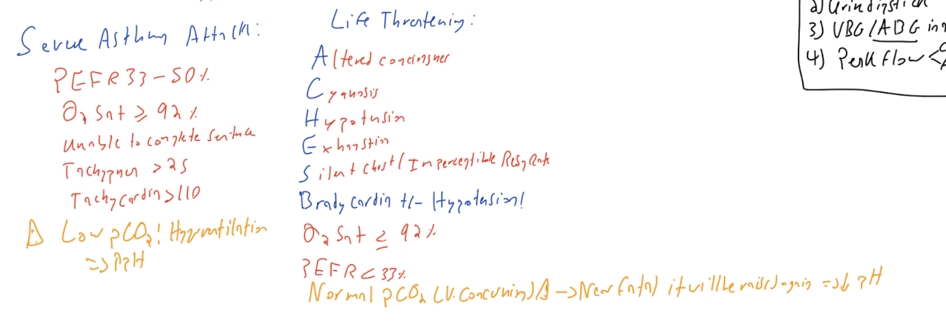 Differentiate between a Severe vs life threatening asthma attack.