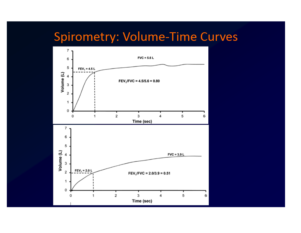 FEV1 falls mroe than FVC to lower FEV1/FVC