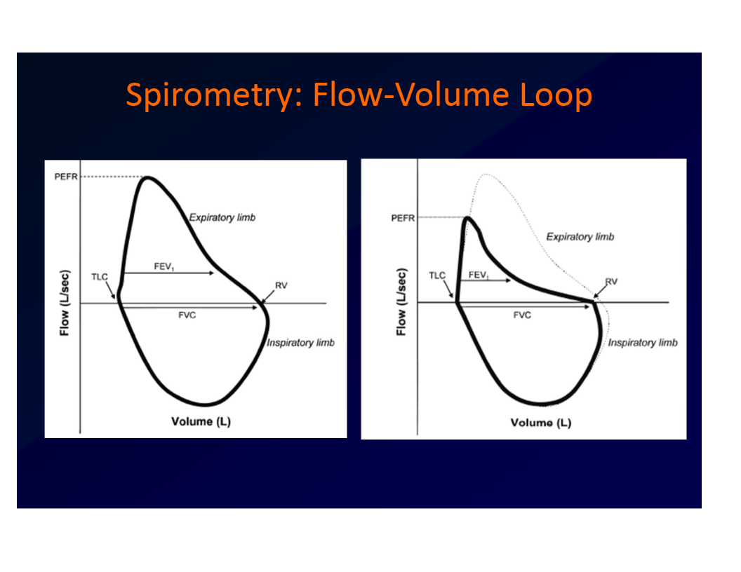 Describe the flow-volume loop of spirometry in an asthmatic.