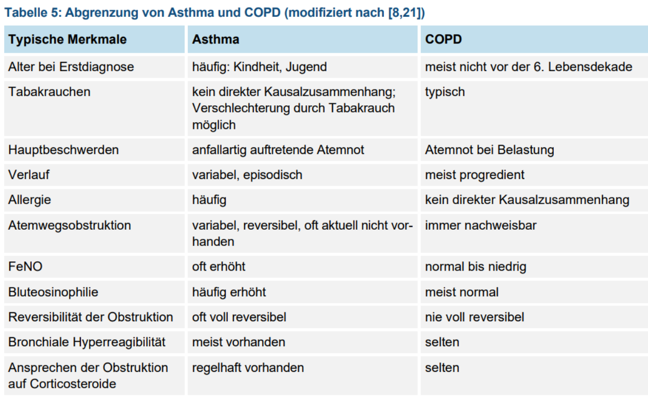 Prüfungsrelevant: Grenzen Sie Asthma Bronchiale von COPD ab anhand von mindestens 3 Unterschieden.