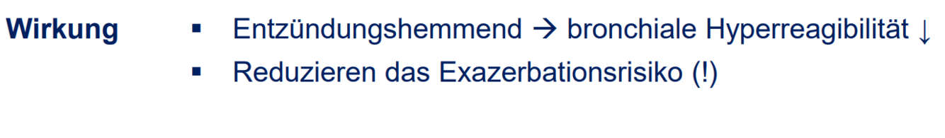 Da sie vom Wirkmechanismus her die bronchiale Hypsensitivität behandelt, welche weitestgehend bei Asthma und nicht bei COPD vorkommt.