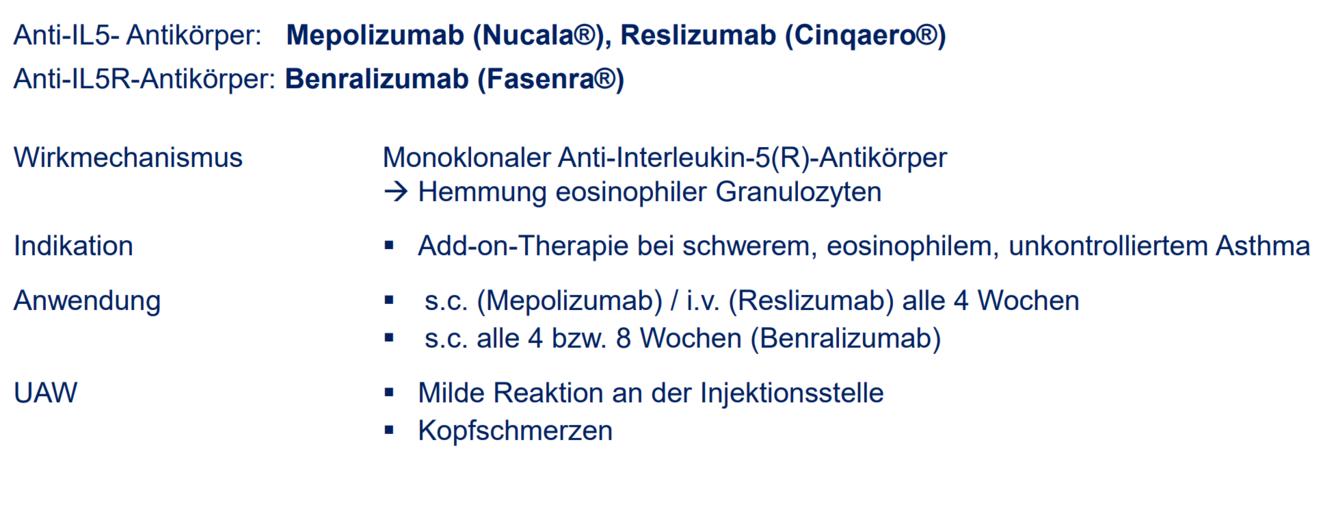 Welche Asthma Medikation ist bei eosinophilem Asthma zugelassen, wie wirkt es und was sind die Nebenwirkungen?