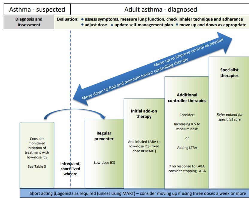 SABA throughout PRN but if >3 doses/week