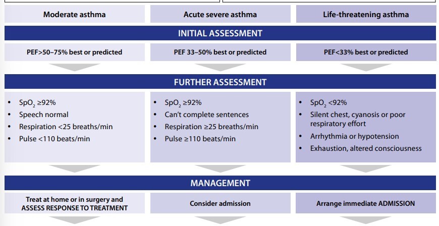 Normally the PaCO2 should be low in asthma attack but if it is normal or high then they need to be transferred to ITU for ventilation as this signifies a failing respiratory effort.