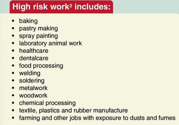 What are some high risk professions for asthma development?