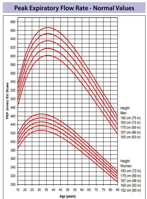 What is the normal PEFR in a 167cm female aged 25yrs?
