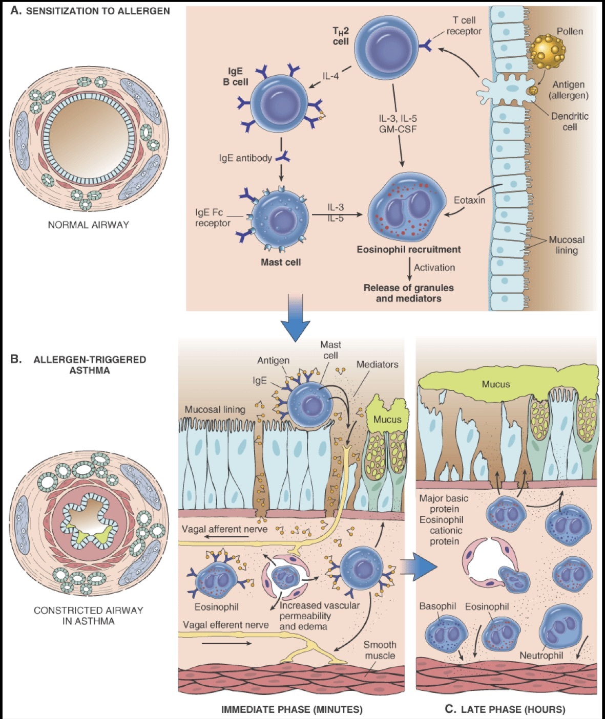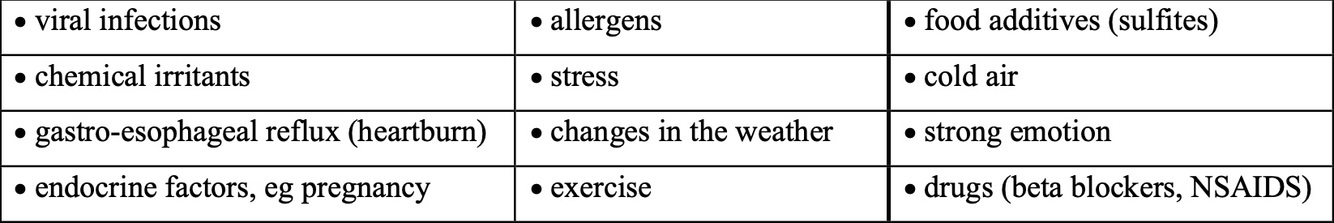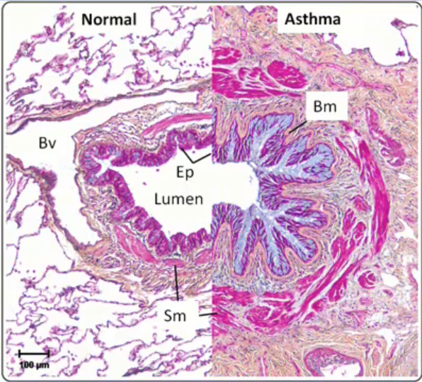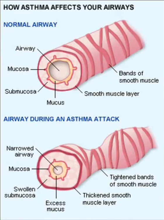 Exposure to specific and nonspecific irritants cause airways to become narrow and obstructed.