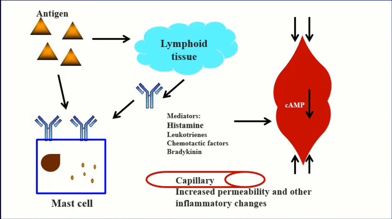 Binding of Ag to cell-bound IgE stimulates mediator release from mast cells, MΦ, and basophils.