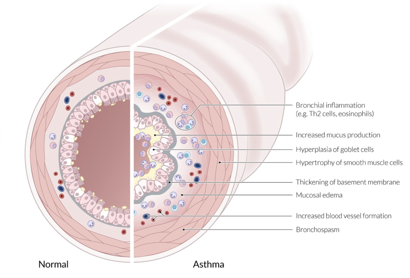 Explain the broad pathophysiology of Asthma