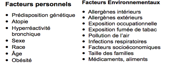 On considère que l’inflammation bronchique et les changements de leur structure (remodelage) sont responsables de ses manifestations tant cliniques (symptômes) que physiologiques (obstruction bronchique variable, hyperréactivité bronchique).
