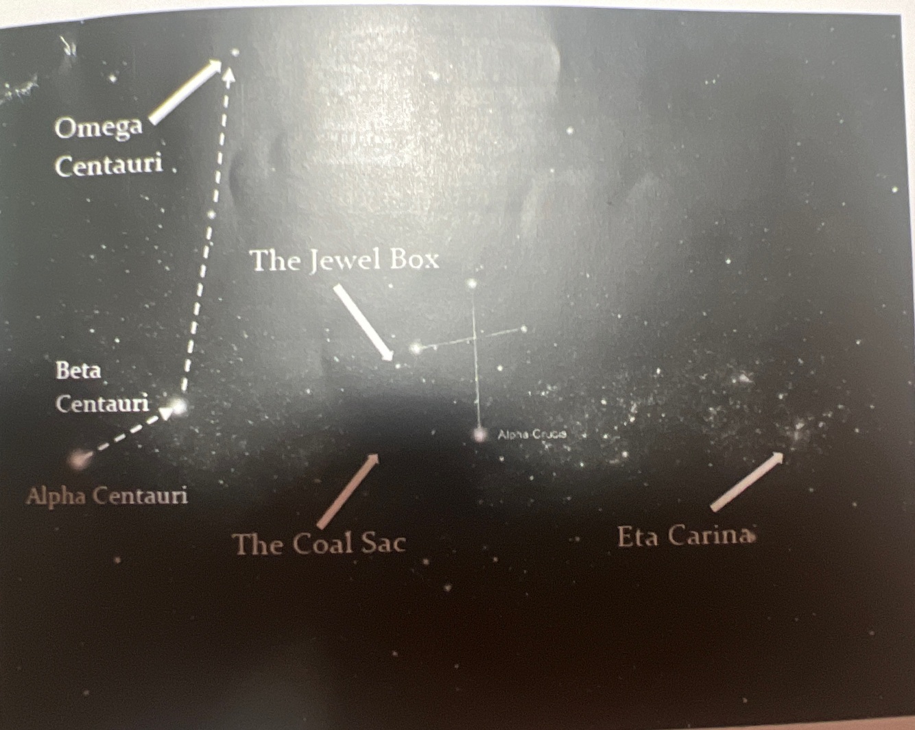- opposite side of the southern cross to the pointer stars