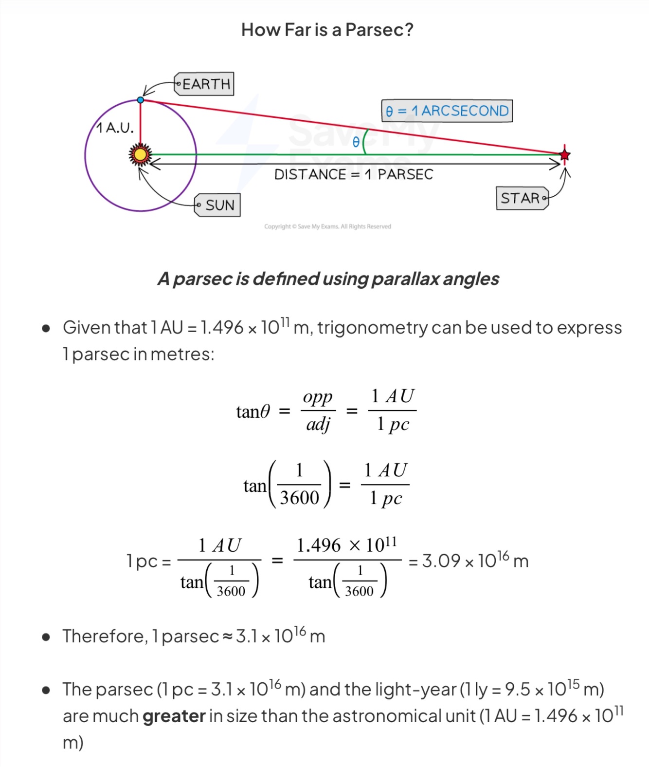 The distance at which the radius of the Earth’s orbit (1 AU) around the Sun subtends at an angle of 1 arcsecond