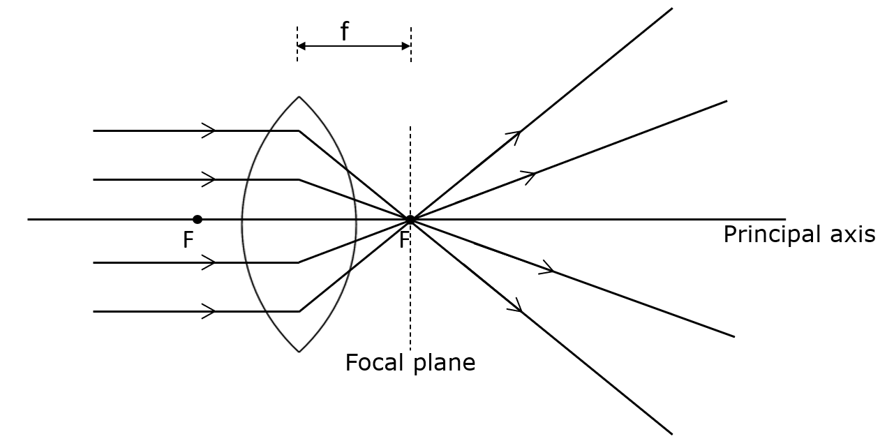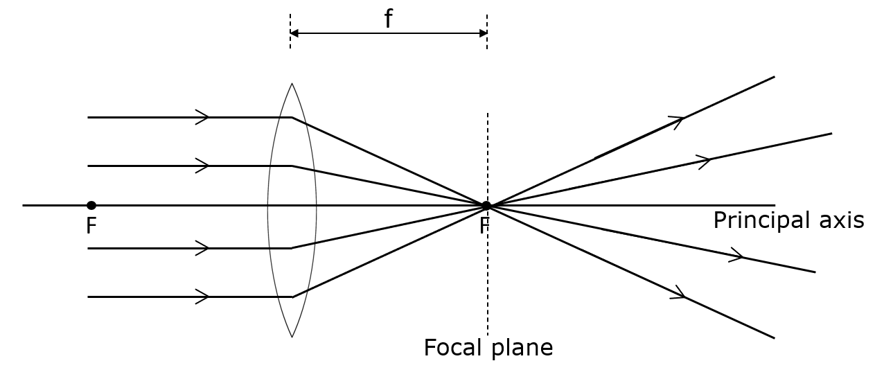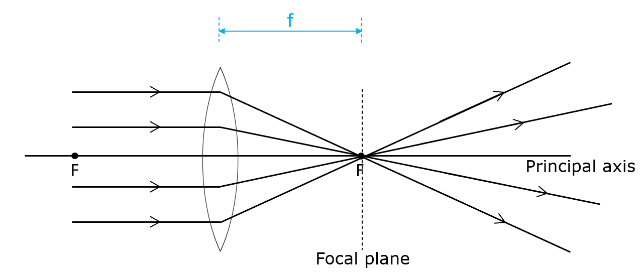 (Parallel rays converge on the focal plane)