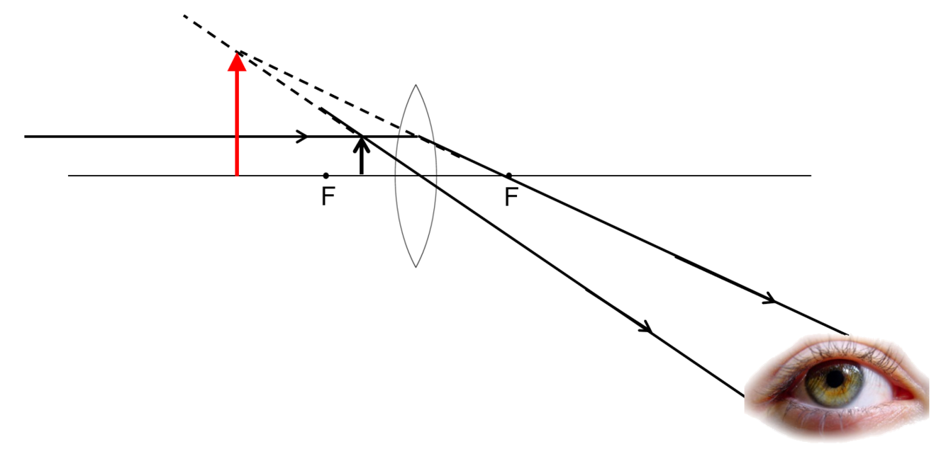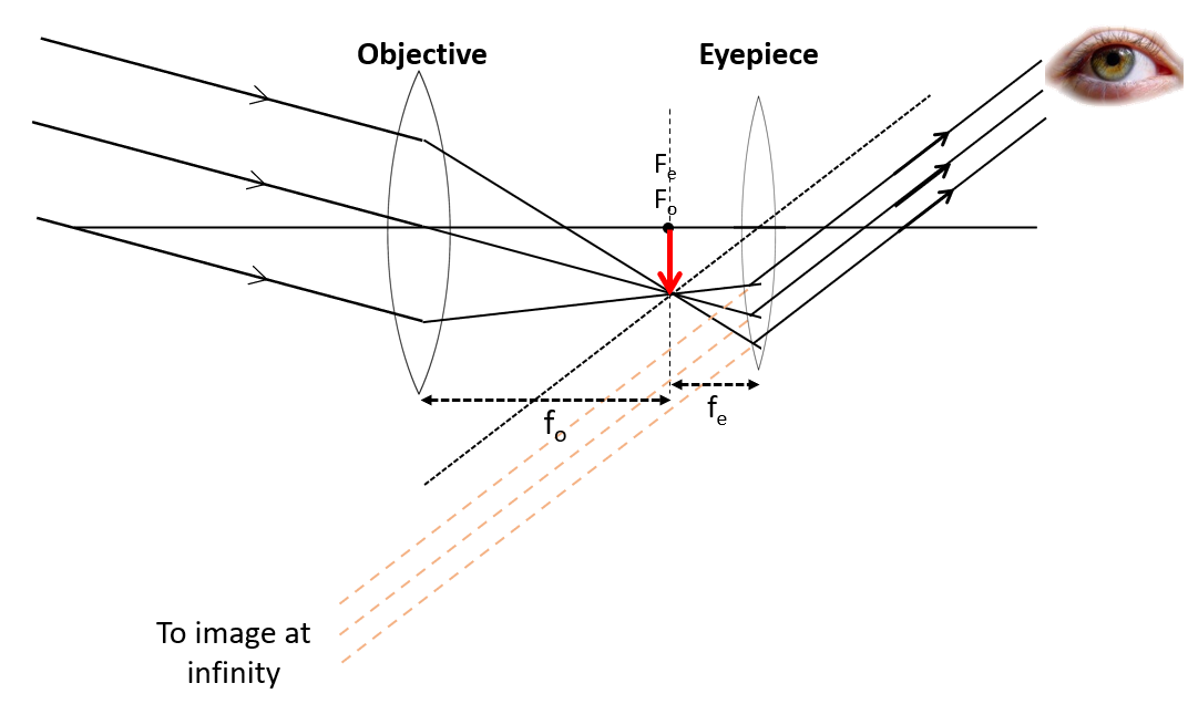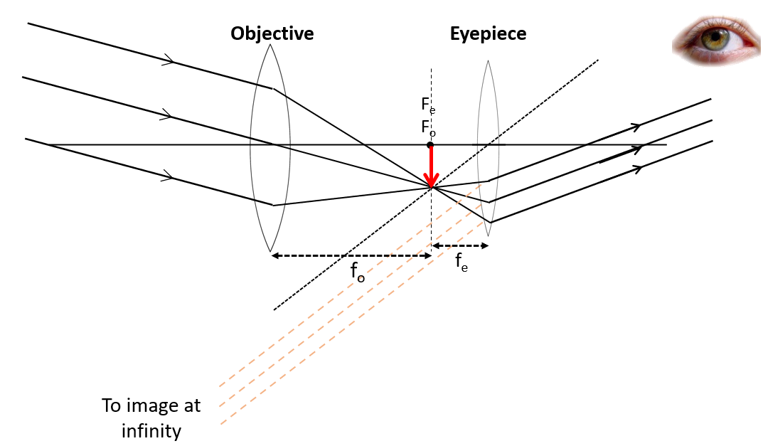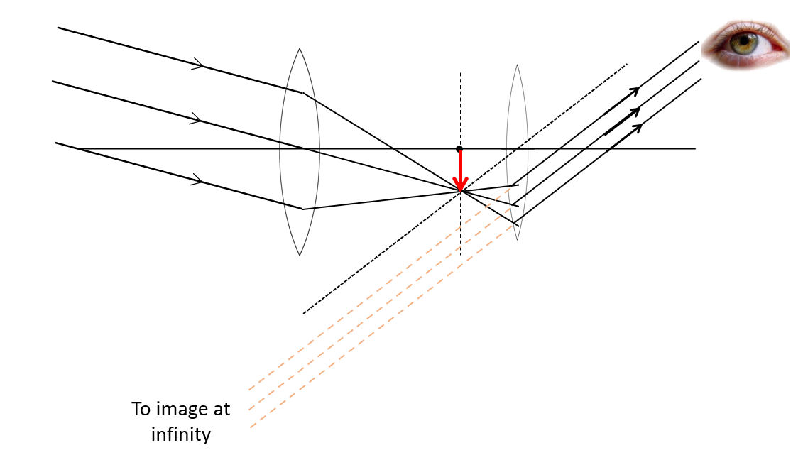 Rays from eyepiece lens must be parallel to dotted construction line