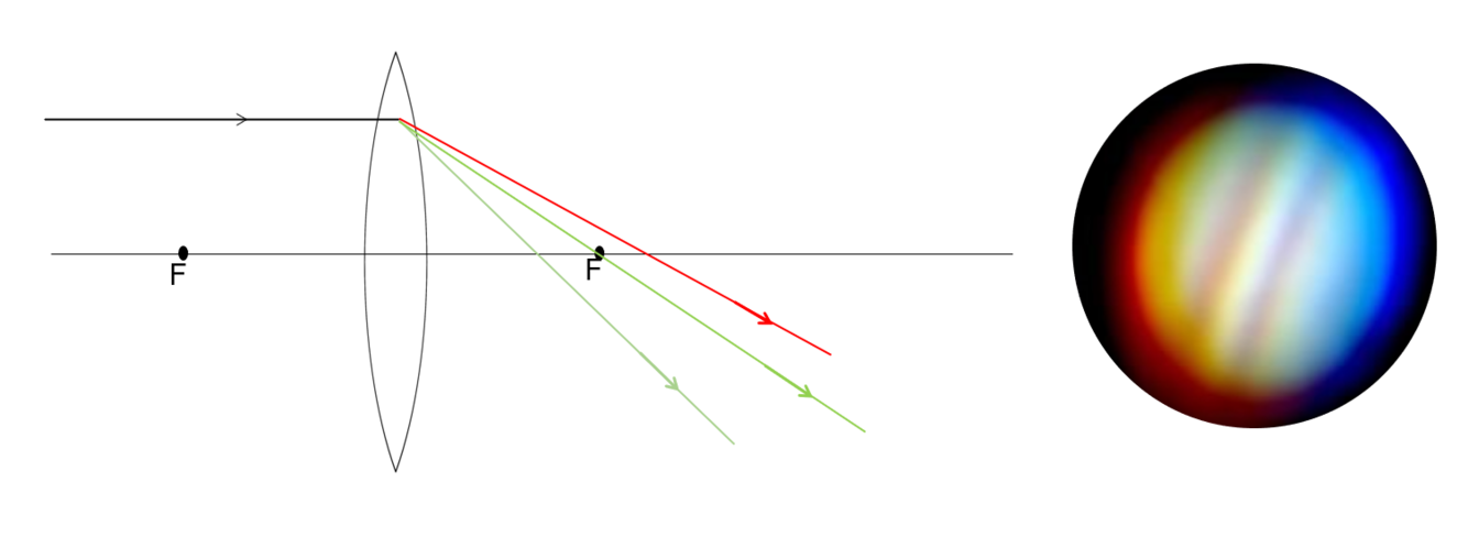 Focal point different for different colours