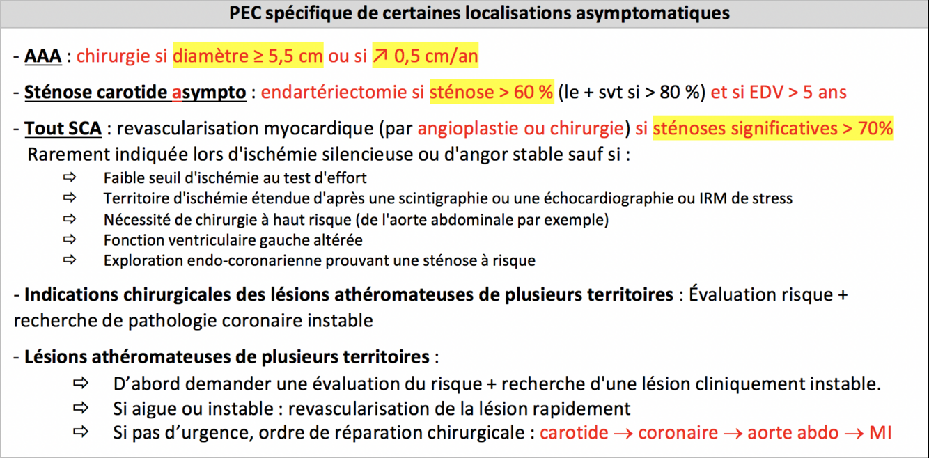 PEC spécifique de certaines localisations athéromateuses asymptomatiques