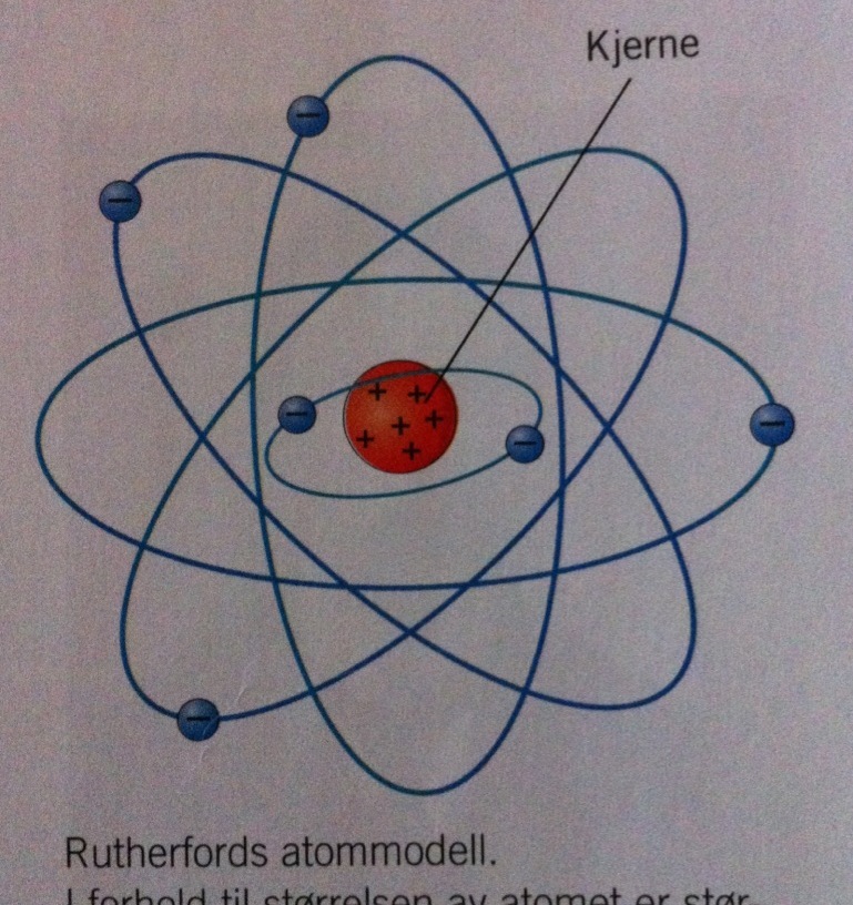 Nevn tre viktige punkter i Rutherfords atommodell