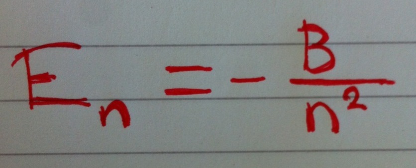 Energien til et H-atom der elektronet er i tilstand n, og der B er en konstant, er gitt ved: