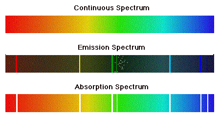 The absorption spectrum is typically displayed as a set of dark lines (or missing lines) in the spectrum, representing the absorbed wavelengths. This is the third bar in the image.