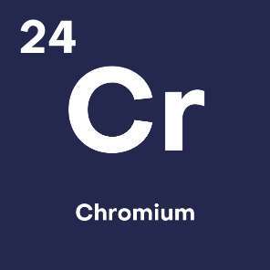 Chromium is a hard, lustrous transition metal used in stainless steel, chrome plating, and as a coloring agent in glass and ceramics.