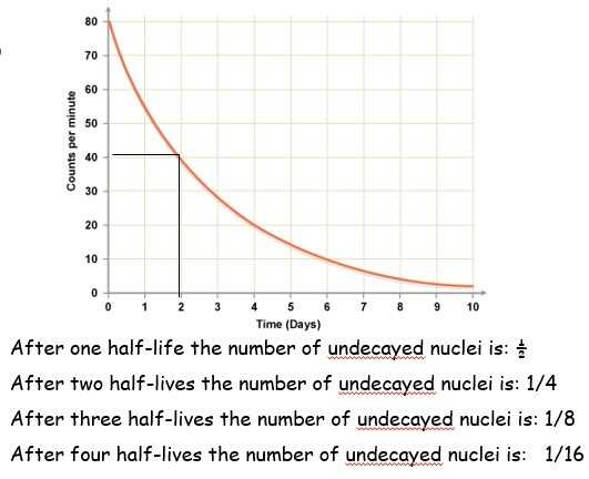 The half-life of a radioactive isotope is the time it takes for the number of nuclei of the isotope in a sample to halve