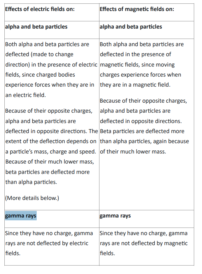 Effects of electric and magnetic fields on alpha and beta particles and gamma rays