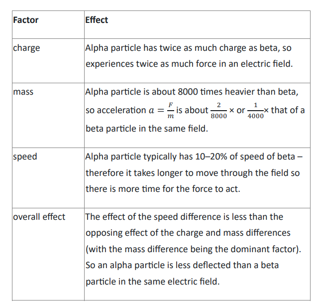 deflection rate of beta vs alpha particles