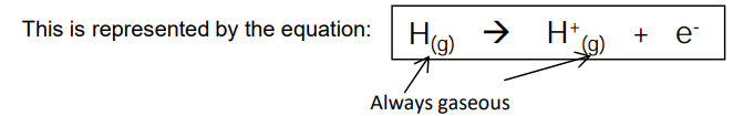 e.g. Ti (g)– Ti+(g)+ e–