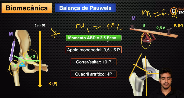 Balança de Pauwels - Força abdutora para diferentes situações - apoio monopodal, correr ou saltar, quadril artrítico