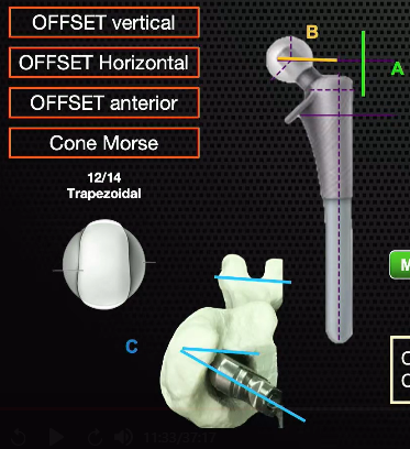 B - Offset Horizontal - Distância do centro da cabeça do fêmur até o eixo da haste.