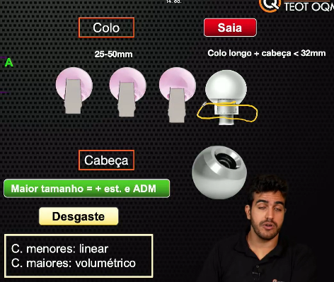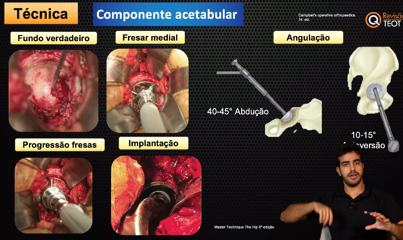* Anteversão: Importante para estabilidade, normalmente de 10-15°.