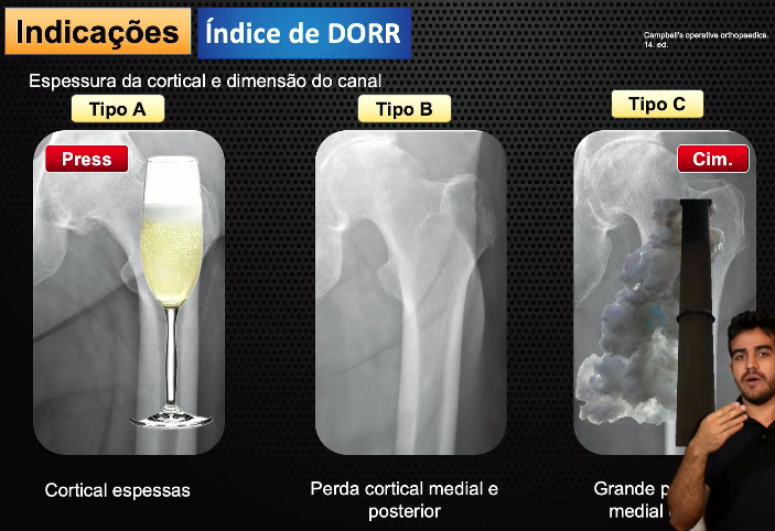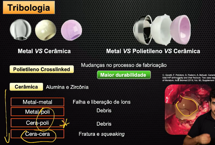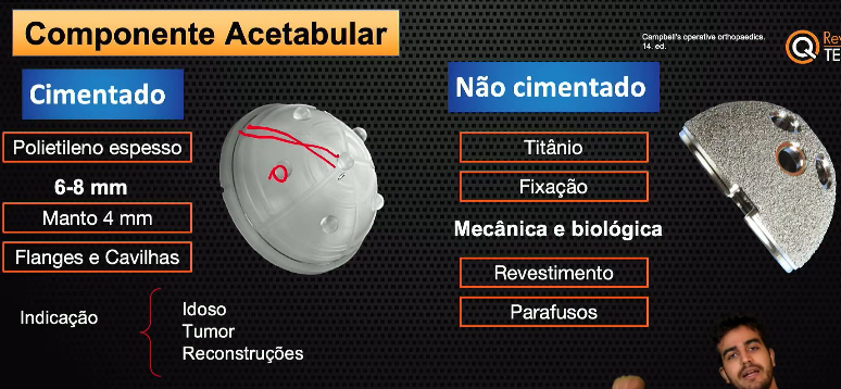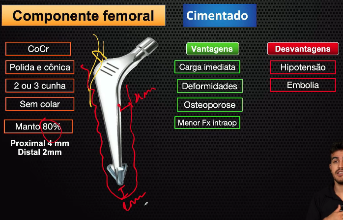Componente femoral cimentado - características técnicas e material ideal, vantagens e desvantagens