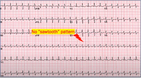 We don’t see saw-tooth waves in inferior leads and also don’t have positivity in V1